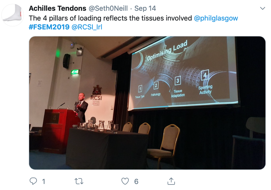 On 14th September the Faculty of Sports and Exercise Medicine (FSEM) Ireland hosted it’s widely anticipated 16th Annual Scientific Conference (ASC) at the prestigious Royal College of Surgeons Ireland. The event itself, entitled “Movement is Therapy”, showcased some of the best and brightest from across Medical and Allied Health Professions and gave space to reflect on how effective prescription of loading and various interventions can cause positive adaptations. This fantastic event was organised by Co-Chairs Dr James O’Donovan (FSEM) and Prof Phil Glasgow (ISCP) and had a world class line up of researchers and clinicians.