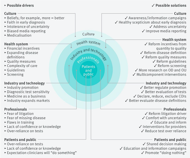 - Pathirana T, Clark J, Moynihan R. Mapping the drivers of overdiagnosis to potential solutions. BMJ. 2017;358.