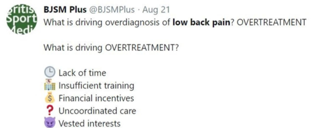 - Darlow B, Forster BB, O’Sullivan K et al. It is time to stop causing harm with inappropriate imaging for low back pain. Br J Sports Med. 2017;51(5):414-5.