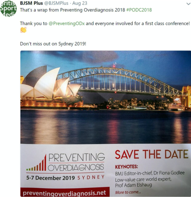 Eine Reihe hochrangiger Fachjournale haben exklusive Sonderausgaben mit Aufsätzen veröffentlicht in denen exklusiv die negativen Folgen von zu viel Medizin diskutiert werden. Dazu gehören unter anderem die Too Much Medicine Kampagne des BMJ und die Less is More Serie von JAMA’s Internal Medicine. Es gibt Bücher, Podcasts und sogar jährliche Konferenzen (Abb. 9). Und dennoch werden diese Bemühungen zum Reduzieren von Überdiagnosen erschwert durch das das fehlende Bewusstsein von Patienten und behandelnden Ärzten.