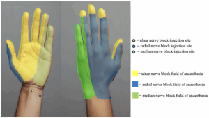 – Positioning for the blocks is always laying hand flat on either the volar or dorsal side (except from the radial nerve block)
