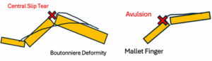 | Mechanism | Forced extension while actively flexing | Direct trauma or forced flexion of extended finger (e.g., “mallet finger”) |