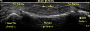 Palpable nodule at A1 pulley. “Locking/catching” on flexion-extension cycle. Imaging US : dynamic ultrasound can be used to look for tendon thickening and dynamic bunching underneath pulley |