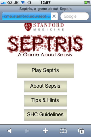 Septris is a case–based interactive tool that shows up to eight patients’ avatar’s slowly descending a screen as their condition deteriorates. You can download it here. There is also a YouTube demo.
