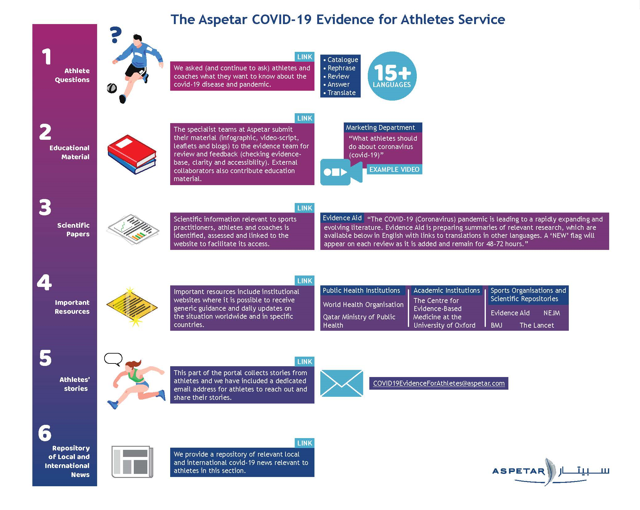 Download this infographic (with clickable links) here: Aspetar COVID-19 Evidence for Athletes Service