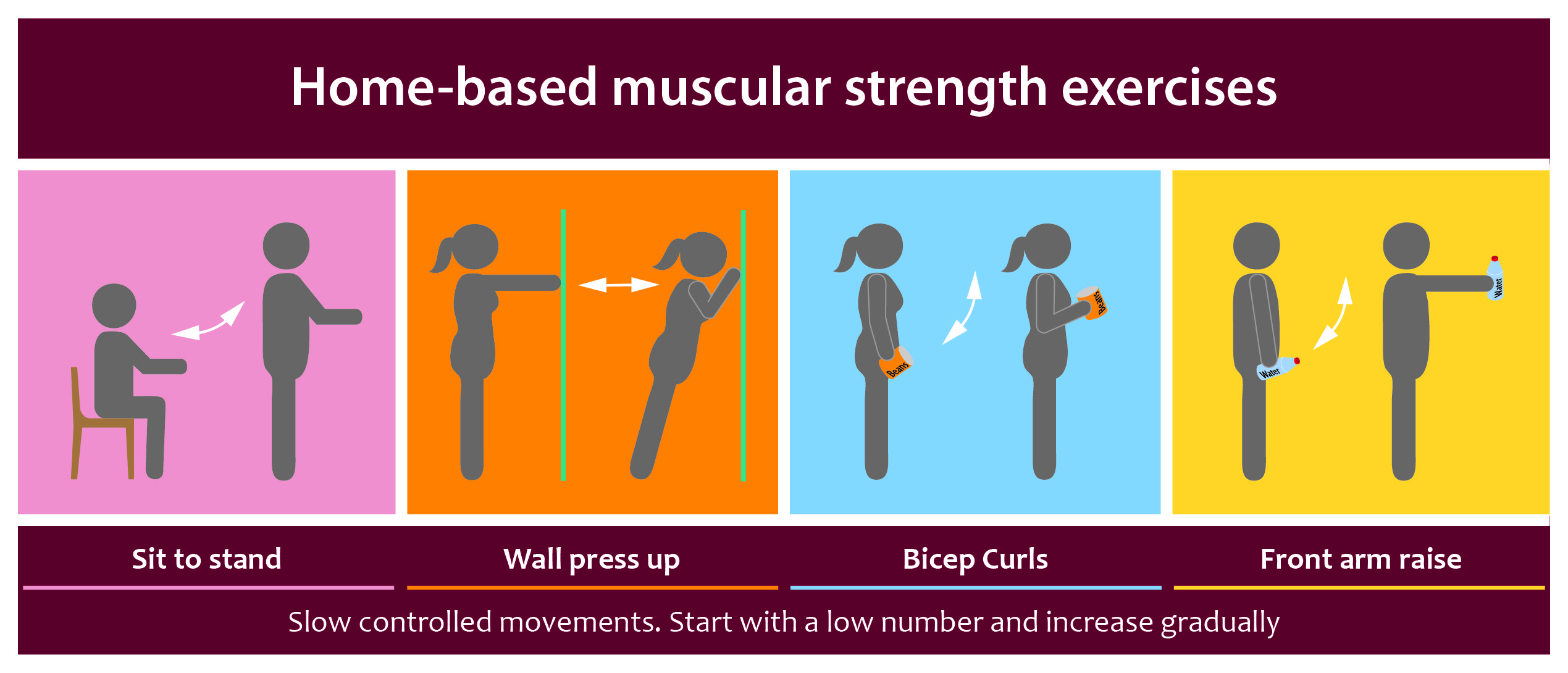 During COVID-19, the World Health Organisation has defined vulnerable groups as those aged over 60 years (regardless of health condition), and those with underlying health conditions, such as cardiovascular disease, diabetes, chronic respiratory disease, and cancer. Additionally, the UK Government has identified pregnant women as an ‘at risk’ group. The benefits of physical activity for these groups are well known and emphasised in the 2019 UK physical activity guidelines.[1] As well as physical benefits, being active promotes emotional well-being.[2] With anxiety levels escalating, this matters more than ever. Normally, we tailor our physical activity advice around community provision, such as swimming, fitness classes and even walking with friends. These options may no longer be available and home-based activity could be your best option. Although some providers have tested home-based activity programmes for people with underlying health conditions, we need to adapt resources for those who need to stay indoors for long periods and practice social distancing. Many people might feel lonely and may not have a plan to maintain their health. More than ever, physical activity can help to reduce the effects of social isolation and prevent deconditioning caused by extended sitting. In this blog, we share some of the evidence about home-based physical activity, and provide practical advice to begin a home-based activity programme.