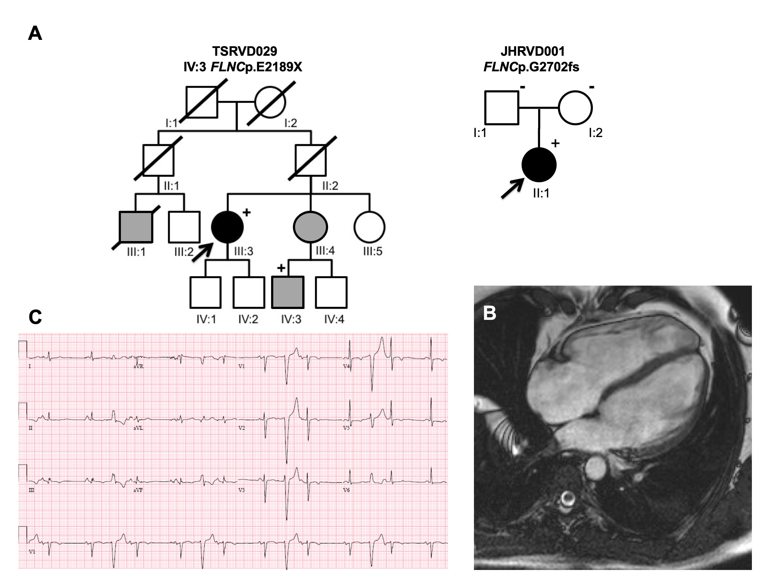 Arrhythmogenic right ventricular cardiomyopathy (ARVC) is a heart muscle disease that affects predominantly the right ventricle and cause sudden cardiac death. We studied 156 ARVC patients lacking variants in known ARVC genes, and identified two unique FLNCtv variants in two families fulfilling “definite” diagnosis according to the 2010 ARVC Task Force Criteria. Segregation analysis revealed that one of them was a de novo variant. In both families the disease phenotype was characterized by prominent ventricular arrhythmias and sudden cardiac arrest. Our findings should prompt inclusion of FLNC genetic testing in ARVC to improve diagnostic yield and testing of at-risk relatives. (By Prof. Luisa Mestroni, https://jmg.bmj.com/content/early/2020/01/10/jmedgenet-2019-106394 )