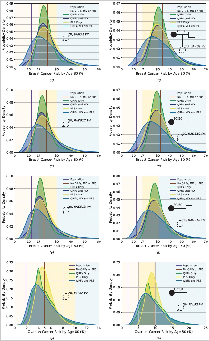Pathogenic variants in BARD1, RAD51C and RAD51D have recently been established as breast cancer susceptibility genes; and pathogenic variants in PALB2 have been shown to be associated with epithelial ovarian cancer risk. No cancer risk prediction model currently exists which incorporates these associations. Here, the BOADICEA multifactorial breast and ovarian cancer risk prediction model was extended to incorporate these associations and has been implemented in the CanRisk tool (www.canrisk.org) for use by healthcare professionals. The enhanced risk prediction model will enable healthcare professionals to provide personalised breast and epithelial ovarian cancer risks to BARD1, RAD51C, RAD51D and PALB2 pathogenic variant carriers and will allow for more informed choices on cancer risk management options. (By Dr. Antonis Antoniou, https://jmg.bmj.com/content/early/2022/09/21/jmedgenet-2022-108471 )
