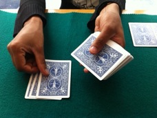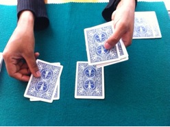 The pack is returned to the spectator, who removes any number of cards from the top, middle and bottom of the pack and places them on the table.
