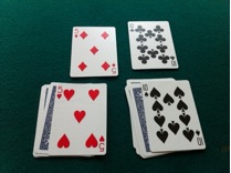 If lecturing to a large audience, consider getting some ‘jumbo’ playing cards. In the photo below, a regular pack is seen on the left hand side. The cards on the right are about A4 size.