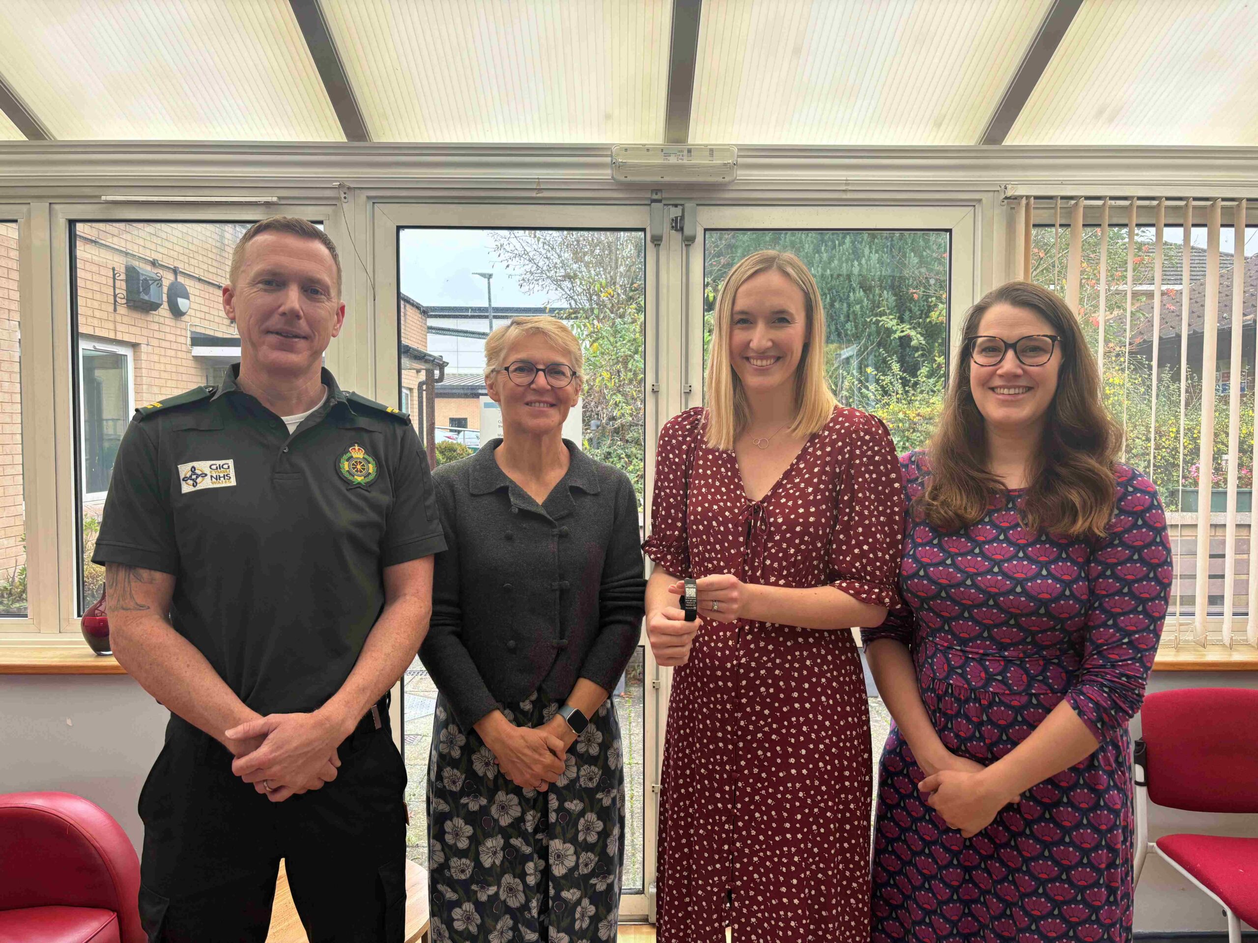 Image 1: QR-Code Cymru Team – Left-Right Mr Ed O’Brian (WAST EOL lead, Professor Nikki Pease, Dr Elin Harding, Dr Alice Crabtree